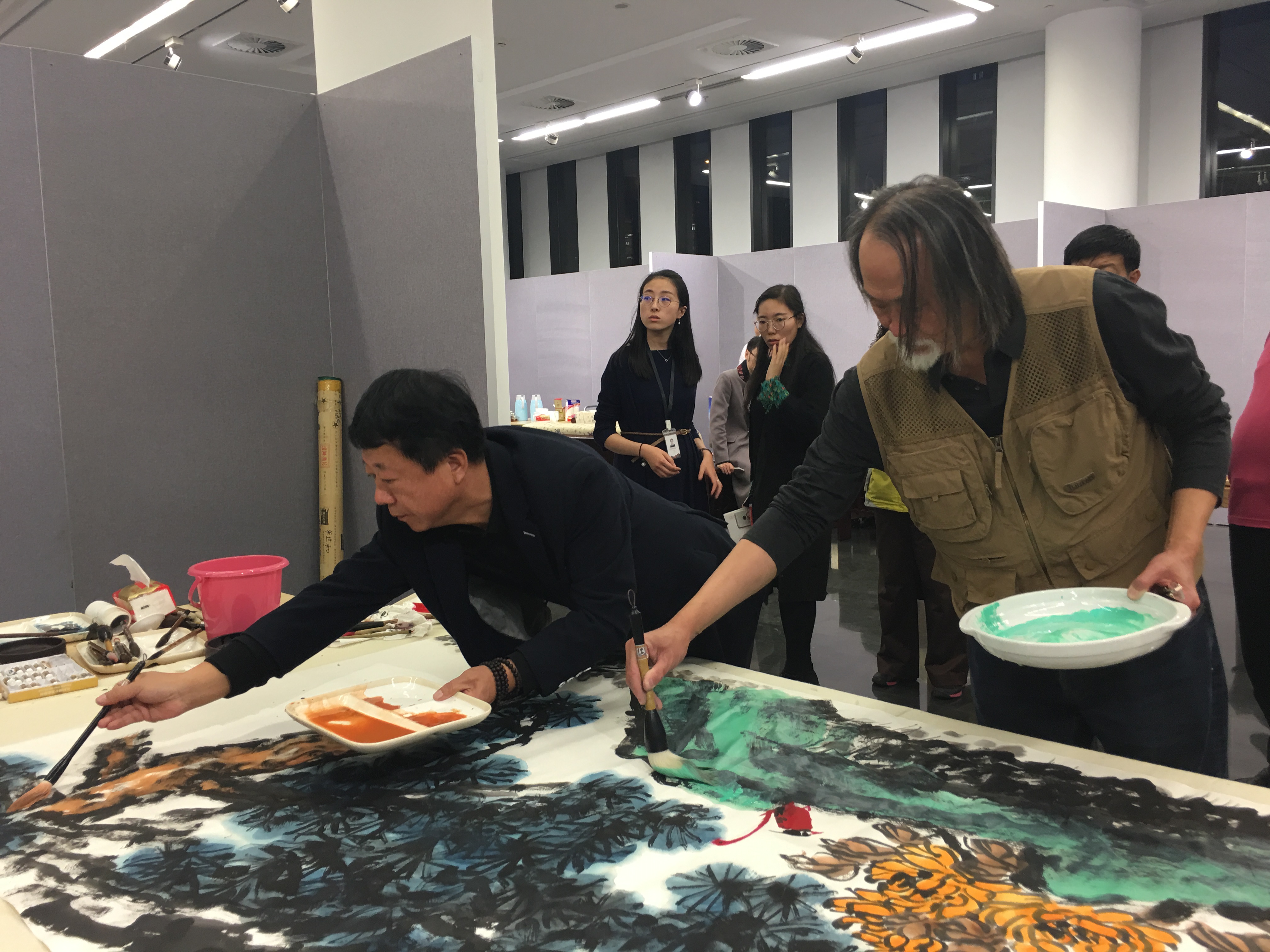 盛鸣、邢少臣在作画