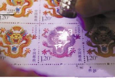 “网购邮票仅仅只能显示邮票画面,单凭肉眼很难辨别。我国邮票印刷使用的都是专用纸张,不含增白剂而且市面无售,但赝品使用的是普通纸张,通常含有增白剂。因此,在紫光灯下,专用纸张没有荧光,赝品的纸张往往发出荧光?!碧杏收芾砭肿ㄒ等耸刻嵝?,购买邮票要学会“三看”:一看邮票齿印是否均匀整齐;二看颜色,真邮票颜色光亮深厚;三看邮票画面比例,真邮票的画面在正中央。