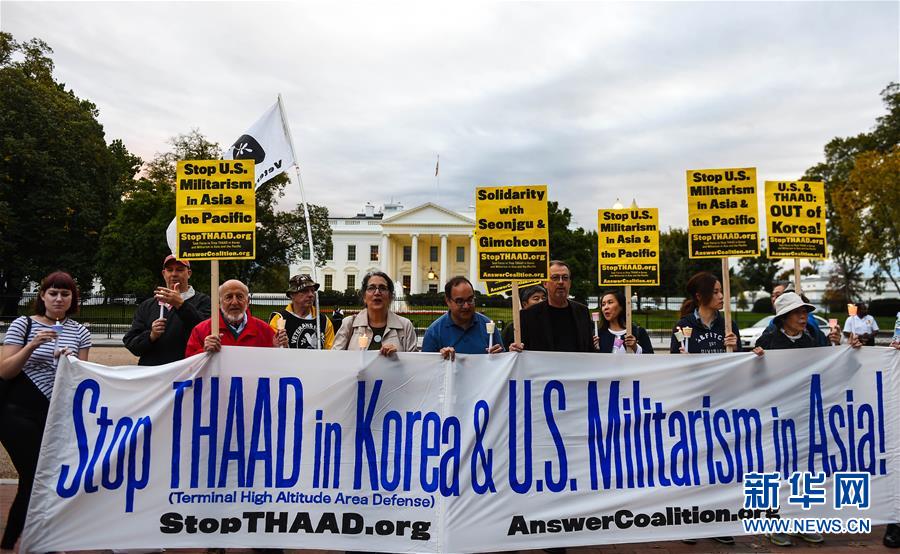 当日,一场反对美国在韩部署“萨德”反导系统以及反对美国在亚太地区军事部署的集会活动在白宫前举行。
