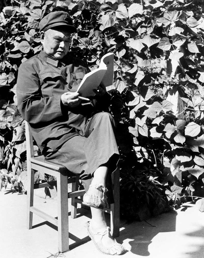 王耀南穿草鞋在看书