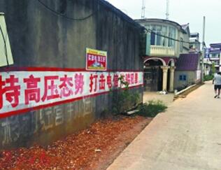 与其他村庄的墙壁上多写着“机器打井”、“空心砖包送”等小广告不同,在石溪村,几乎家家户户的墙壁上都用写着“同诈骗斗争”、“严厉打击诈骗犯罪行为”等标语,红色的大字写在白色的油漆上,格外醒目。