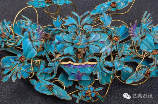点翠之珍贵,除去金银珠宝的衬托与繁复的工艺外