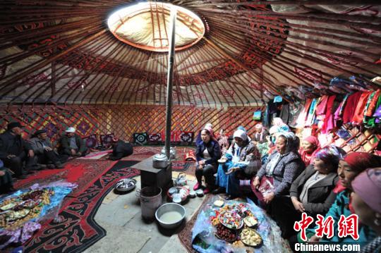 图为哈萨克族传统毡房里的盛会?!⊙钛廾?摄