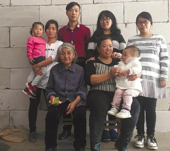 王荣秀和她的婆婆(前排)以及子女们的合影