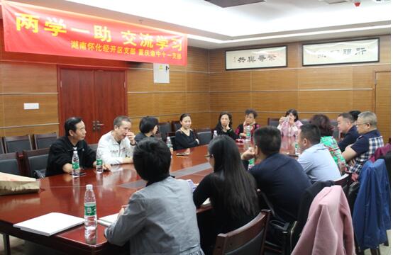 下午,与渝中区第十一支部举行“两学一助,学习交流会”, 渝中区委专职副主委代晓伟参加了座谈会。在座谈会上,双方简单介绍了各自支部的情况,交流了双方各自在支部建设、参政议政、社会服务等方面的工作经验。在渝中区委专职副主委代晓伟和怀化民建市委主委肖莉杏的共同见证下,渝中区第十一支部和怀化民建经开区支部达成了建立友好支部的意愿,希望两地基层在将来进一步加强联系,相互交流,相互学习,不断进步,共同发展。
