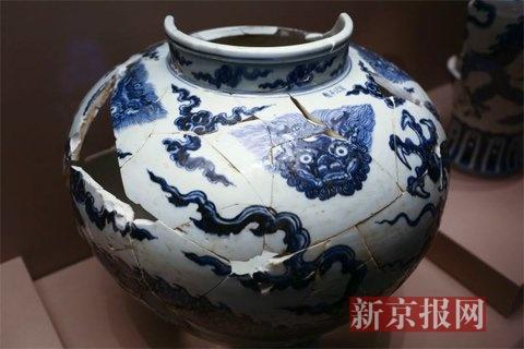 景德镇御窑遗址出土的青花辅首龙纹罐。