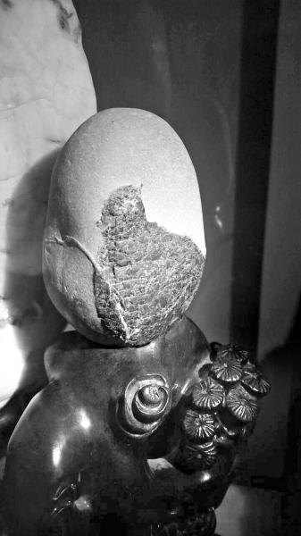 祁长青还有一块鸟石,是一块卵石,刚捡到时就是一块卵石上有一片黑色的斑。带回家清理后,黑色的斑块成了一只活灵活现的小鸟,“喙”部是一个小小的凸起,眼部正好是黑斑上的一小块白色,就连黑斑都一道道酷似鸟的羽毛。祁长青把它带回家后送去相熟的店面配底座。一天他忽然接到电话,说是有个人看上了这块石头,想30万买走。祁长青一听就慌了,直说不卖,赶紧过去把石头拿回来了?!吧岵坏冒?,留着当传家宝吧?!?/p>