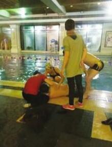 原标题:男子泳池溺水 美女护士跪地施救走红朋友圈(图)