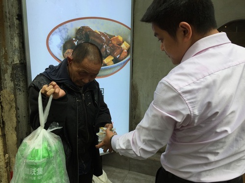 只见老人熟稔地接过月饼,一块一块塞进破旧的皮夹克口袋里?!澳≡谀睦??”流浪老人低声告诉记者,“住在旁边的公园”。对于杨先生而言,这些流浪汉已经成为陌生的熟人,“他们每天会定点过来领取食物,他们也确实是最需要帮助的人?!?/p>