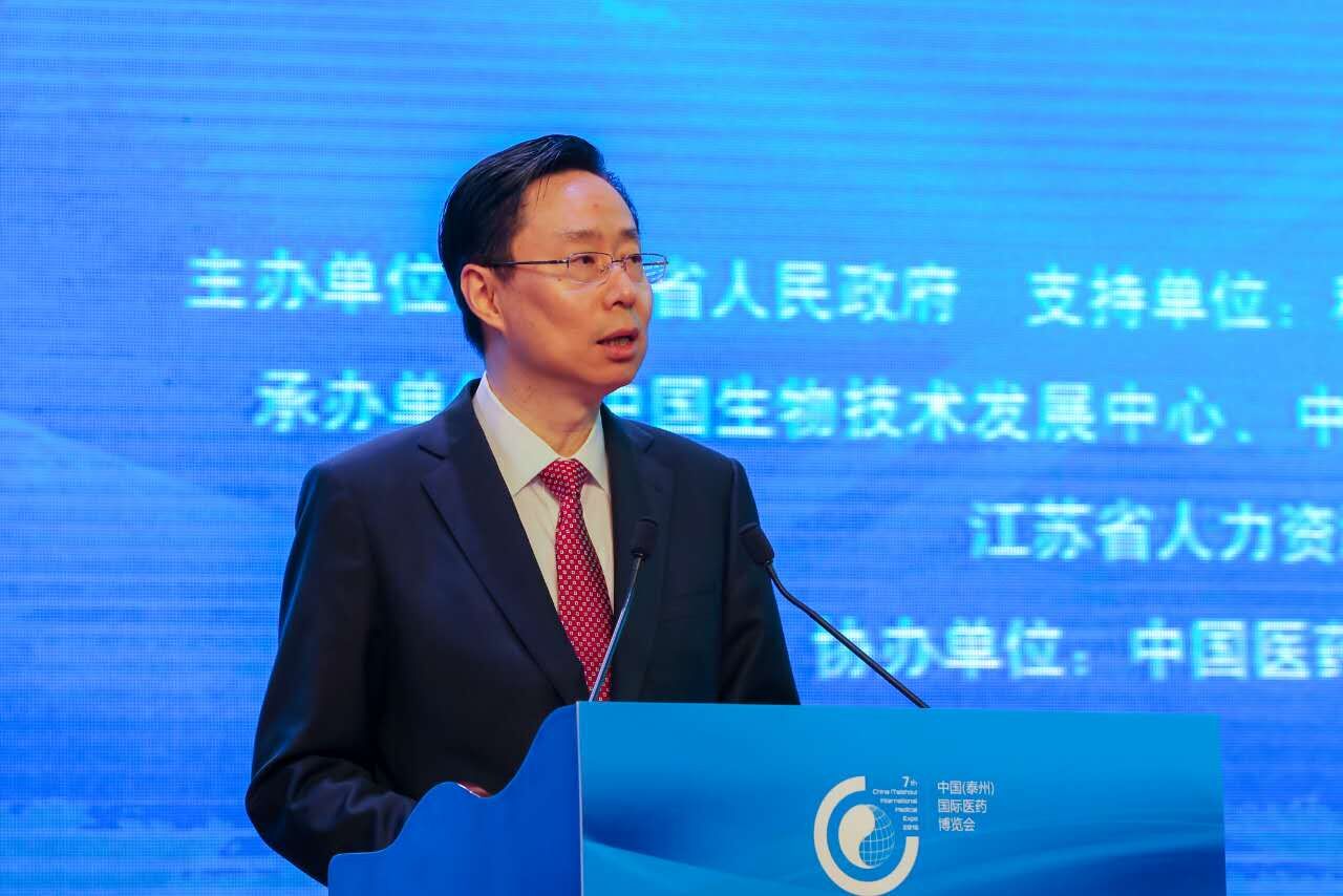 全国人大常委会副委员长桑国卫出席江苏泰州第七届国际医药博览会并阐述中国药物创新与产业化发展的愿景。摄影/刘燕