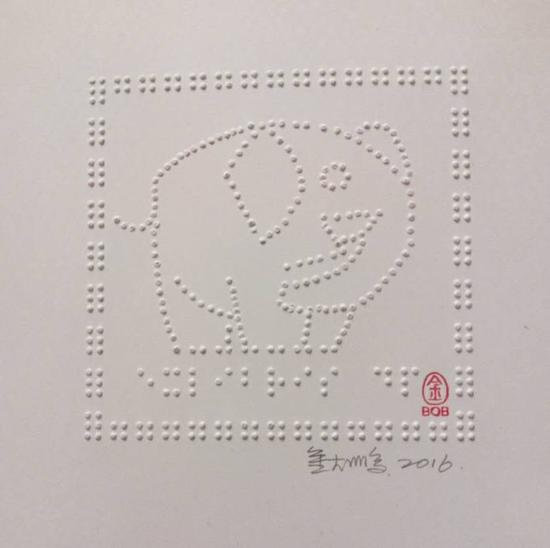 金大鹏老师注意到了这一点,化手中的雕刻刀为笔,为盲文书籍制作了第一张盲文藏书票,上面第一次有了图案。上面是一头略憨态却沉稳的象,有金大鹏老师对盲人俏皮的爱,也有他沉稳而深沉的寄望。