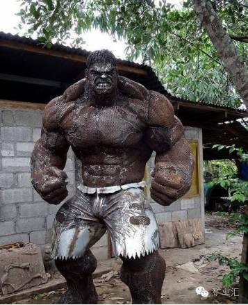 使用废旧螺母等废铁材料焊接制作,来自泰国钢铁雕塑艺术团体 Old Steel Art。