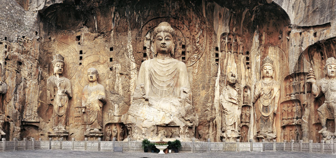 公元495年,北魏孝文帝(471年至499年)将其都城从山西大同迁至洛阳。之后,洛阳成为佛教僧侣的目的地。他们沿佛教起源地印度北部与中国之间的商路游弋,那些贸易之路被统称为“丝绸之路”。龙门石窟有2345个洞窟,它们在黑灰色石灰岩山崖上开凿而成,供佛教僧侣隐居之用。龙门石窟曾经拥有10万尊雕像,将近2 500座石碑。此时,龙门石窟的保护性柱廊、外厅已消失殆尽。龙门石窟是中国三大石窟寺之一,作为宗教朝拜地,那里已废弃很久。尽管如此,中国人仍然了解、崇敬龙门石窟,尤其是那里的书法碑刻。