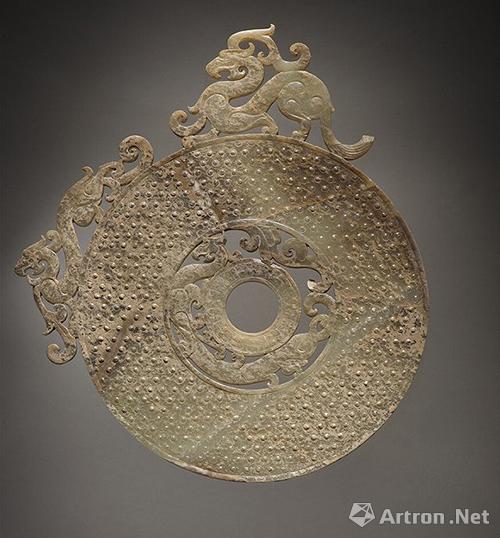 镂空龙虎饰卧蚕纹璧,东周玉器??叭钩悄啥?阿特金斯艺术博物馆藏