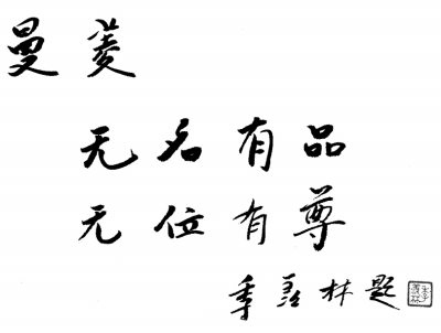 当年我父亲逝世,我曾到京城向季老哭诉。他写下了“无名有品,无位有尊”的字幅,让李玉洁送到勺园给我。