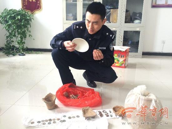“有人盗墓了!”10月8日,乾县公安局乾陵派出所突然接到村民反映,乾县大杨乡咸宁村一座古墓被人盗掘,而且盗墓者正是这个村的村民赵某。接警赶到现场后,民警发现被盗古墓位于村子一处土壕里,墓室被挖掘了三四米深。而就在乾陵派出所对案子展开侦破时,乾县公安局巡防大队也已经对此案调查了一段时间。原来,他们在今年6月份就已经接到了报案,并且已经成功追回了被盗文物,只是暂时还没有对犯罪嫌疑人实施抓捕。