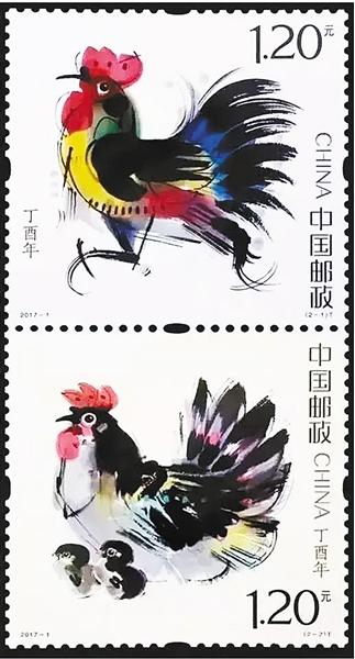 《丁酉年》鸡票出自著名艺术家、北京奥运会吉祥物“福娃”的设计者韩美林之手。而齐白石老人在九十一岁高龄时也曾画了一幅题名为《全家福》的画,画面上就是公鸡和母鸡带着一群小鸡,寓意全家老小都“吉利”。