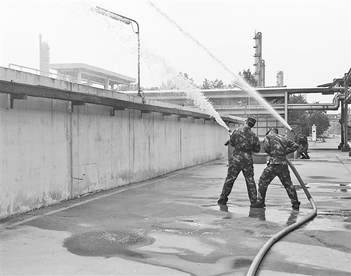 德州支队消防员在华路恒生化工股份有限公司进行消防演练