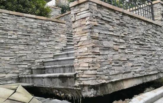 业主赵女士家的第一个台阶彻底和上面几个分了家,她不得不用力抬腿直接迈上第二个台阶。她说:“这个房子花了400多万。为什么会选这里?看看这里纯别墅,品质比较好,现在变成这样了?!?/p>