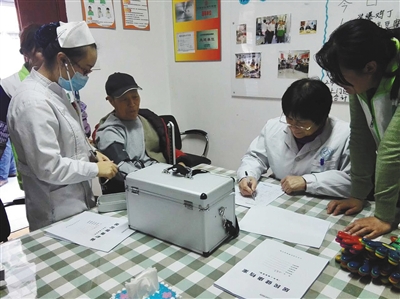 定点医院的医生每周会到乐龄“养老驿站”为老人义诊。新京报记者 李玉坤 摄