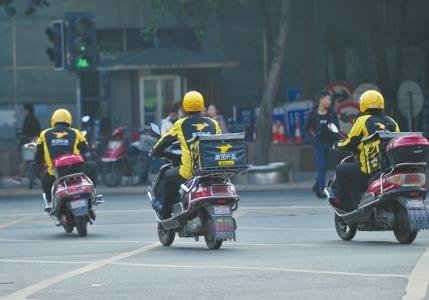 每到饭点,成都外卖小哥已成街头一道亮丽的风景。