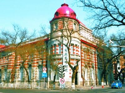 中国法院博物馆坐落在东交民巷与正义路交叉口的东北角,原来是日本正金银行北京支行旧址。小楼的外形很抢眼,古朴而厚重,有一个半圆形的红色穹顶,楼身上也镶嵌着红色的条块。