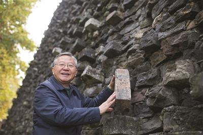 专家手举明城砖很欣慰。新华报业视觉中心记者 宋峤 摄