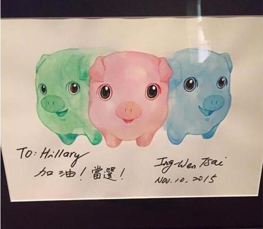 蔡英文送给希拉里的“三只小猪”画像