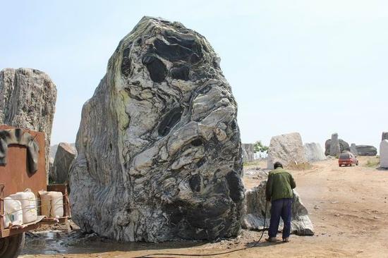 我是从1995年开始收藏观赏石的。记得当年参观了一个奇石展览会,看到很多图文石,都是天然形成的图画,我就被深深吸引住了。后来去到广西的马鞍山 奇石市场,那里的石头买卖早已进行得如火如荼,有人去那里批发石头,有人去那里淘奇石收藏。我也跟着买,没想到一发不可收,走上了一心一意收集石头的道 路,最疯狂的时候都是一车车地运石头回家。我喜欢收藏大石头,大的甚至有四五吨重。那时不管好丑,喜欢的都搬回家,纯粹也是为了自己收藏。