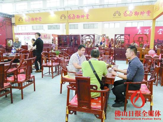 上周周末,市民在陈村举办的一场红木家具展上了解行情。