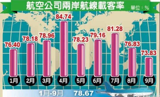 台湾航空公司两岸航线载客率。(图片来源:台湾《旺报》)