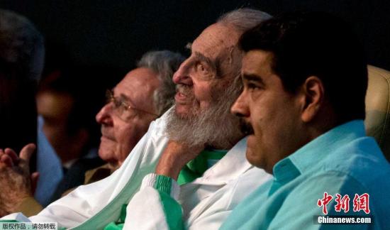 资料图:2016年11月26日,古巴前领导人菲德尔·卡斯特罗去世。古巴官方网站近日曾发布菲德尔·卡斯特罗于本月15日拍摄的两张照片,这是菲德尔·卡斯特罗最后一次见诸于报端的照片。图为卡斯特罗出席庆祝他的九十岁生日的晚会。