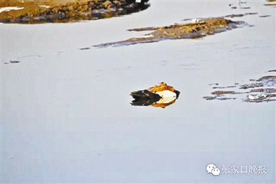 ▲水面上散落着许多赤麻鸭的死体
