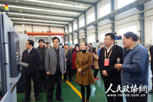 近日,山东滕州市政协组织部分政协委员视察职工技术创新工作。实地察看了山森数控技术公司山森创新工作室、鲁南机床有限公司李鹤创新工作室、滕州供电部鲁班工作室和市房管局创客之家创新工作室,在听取情况汇报后,委员们围绕进一步做好职工技术创新工作积极建言献策。图为委员在鲁南机床有限公司视察现场。陈冰 杨家渠 摄影报道