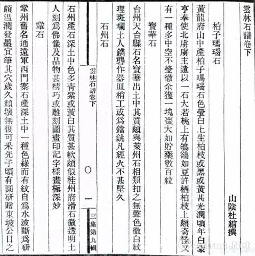 中国第一部赏石专著,宋代杜绾著《云林石谱》宝华石条:“台州天台县石,名宝华?!?/p>