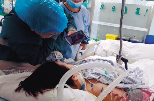 明知妻子看不到 周伟还是将手机中女儿的照片给她看