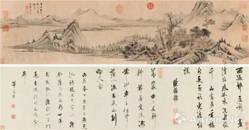 【明】董其昌 仿大痴山水 手卷 设色金笺