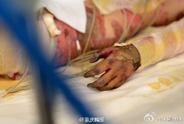 目前佳佳妹因为伤势过重,被送往西南医院重症监护室抢救,经诊断她全身79%烧伤,双手面临截肢。
