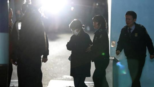 2016年11月3日,韩国首尔,朴槿惠的闺蜜崔顺实在首尔中央法院就“干政门”事件接受审查后离开。