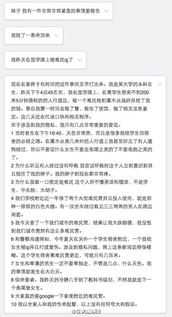 中国驻德国杜塞尔多夫总领事馆11月18日通报说,接到一名中国女留学生报告,称其在返回宿舍途中遭性侵。德国警方已经接到报案并开展调查。图为疑似受害人微博求助信息(来自“这就是德国”)
