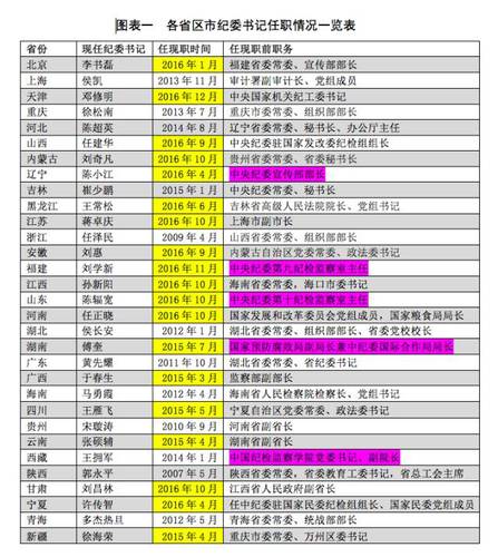 2016年1月,中央办公厅印发了《关于全面落实中央纪委向中央一级党和国家机关派驻纪检机构的方案》的通知,决定中央纪委共设置47家派驻机构,实现对139家中央一级党和国家机关派驻纪检机构全覆盖。根据《中央纪委派驻纪检组组长、副组长提名考察办法(试行)》的规定,2015年3月后新任28名纪检组长的提名均以中央纪委会同中央组织部为主产生。从图表二中可以看到,其中17人曾有过纪检监察机关任职履历,约占6成;另外11人则是从系统外提拔;且28人均为交流任职。