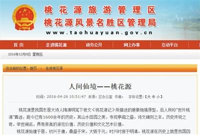 重庆酉阳和湖南桃源分别在旅游官网上宣称自己才是正宗陶渊明笔下《桃花源记》里描述的桃花源。两地旅游官网截图