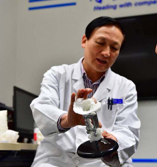 “3D打印可以使原来无计可施的疑难疾病,找到治疗办法,已有治疗方法的,得到进一步改进,从而提高治疗效果,”刘忠军说。