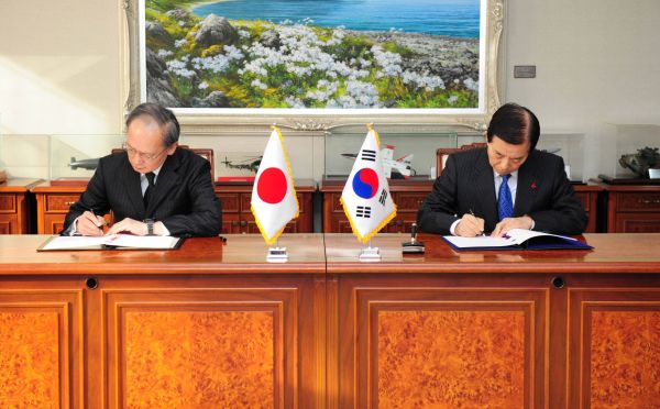资料图片:2016年11月23日,韩日两国在首尔正式签署韩日《军事情报保护协定》,韩国在野党和韩国民众纷纷对此表示抗议。新华社发