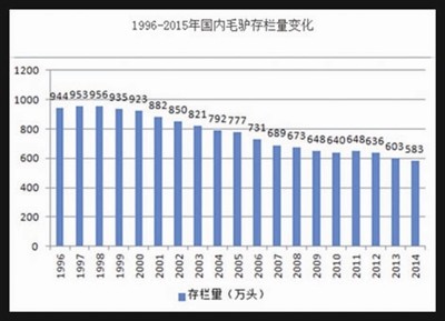 1996-2015年国内毛驴存栏量变化