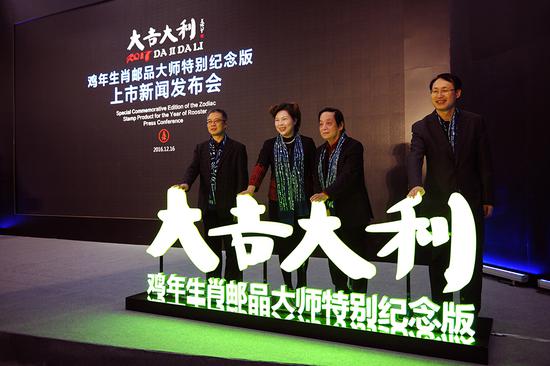生肖邮票发行37年之后又迎来了新开端。12月16日,《大吉大利》鸡年生肖邮品韩美林大师特别纪念版发行新闻发布会,在北京韩美林艺术馆南展区举行。韩美林先生为特别纪念版倾情创作了“雄鸡图”,并亲笔题名“大吉大利”。
