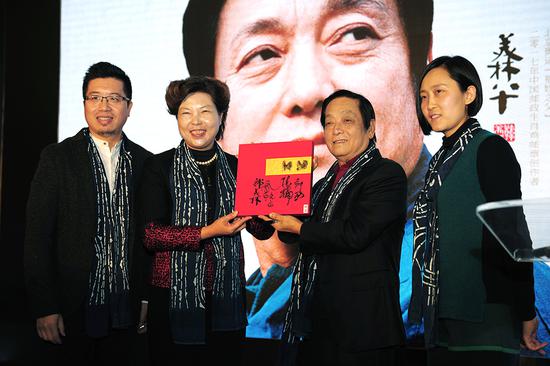著名艺术家韩美林、清华大学美术学院副教授陈楠、中国邮政集团公司邮票印制局设计室雕刻师郝欧,一起为《大吉大利?鸡年生肖邮品大师特别纪念版》签名,并赠送给中国建设银行。