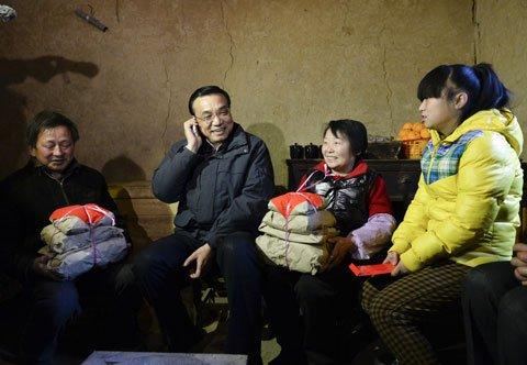 考察陕西安康旬阳县金坡村时,李克强在留守儿童杨康家中,给她远在浙江打工的农民工父亲杨秀峰打电话拜年。出席博鳌亚洲论坛期间,李克强专程来到海南博鳌乐城国际医疗旅游先行区建设工地,慰问在此辛勤工作的农民工。连在考察人力和社会资源保障部期间,总理也不忘与工作人员讨论农民工就业形势,为增加农民工创业就业“支招”。他特别强调,农民收入的一半都来自外出打工,助力农民工就业创业对提高农民收入意义重大。