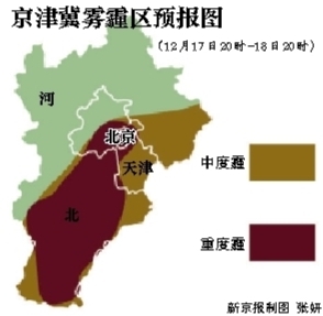17日,中央气象台组织全国天气会商,中央气象台首席预报员张涛介绍,17日至21日,华北中南部、黄淮、陕西关中、东北地区南部等地的霾天气将持续,其中,京津、河北中南部、山西南部、陕西关中等地的部分地区有重度霾,最严重时段在19日夜间至21日。