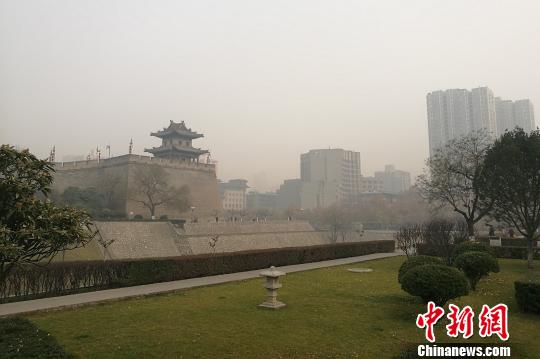 图为西安明城墙被笼罩于雾霾中?!≌盆?摄